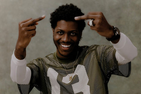 Lojay pulled up to the studio, wearing our Black and unreleased Green Nylon Tracksuit. Check out the pics below!